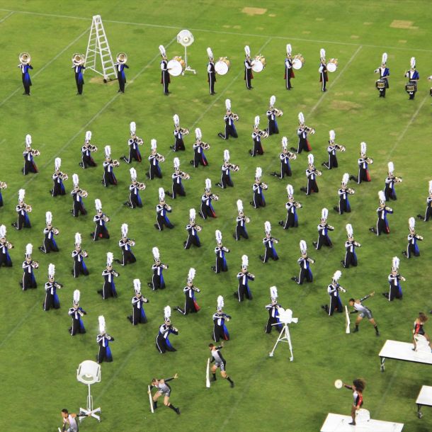 99.650 Punkte, das ist die höchste Note, die je von der Jury des Drum Corps International World Championships verteilt worden ist. Und zwar an die Blue Devils. Seit 1992 sind sie bei den DCI-Weltmeisterschaften unter den ersten Vier und seit 1975 nicht schlechter als Fünfte. Sie halten den Rekord mit 21 Titeln.