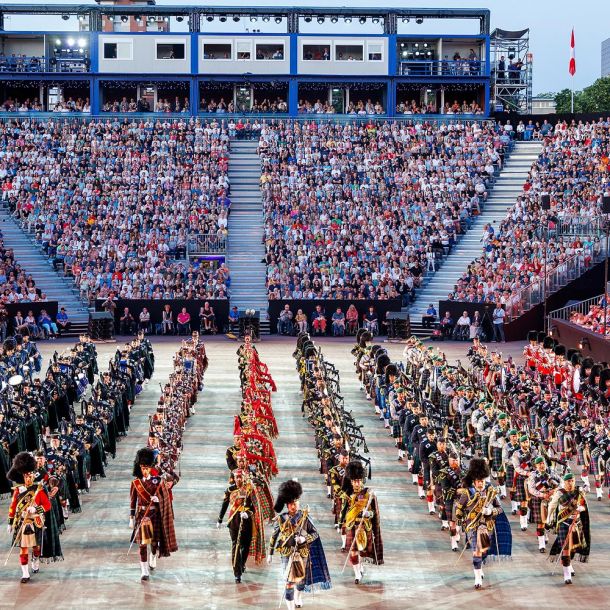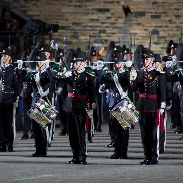 Zum Jubiläum dürfen Sie sich nebst einer neuen Arena vor allem auf ein hochkarätiges Teilnehmerfeld mit viel royalem Touch freuen. Mit The Band of His Majesty’s Irish Guards und The Band of His Majesty’s Scots Guards sind 2026 gleich zwei königliche Garden aus Grossbritannien in Basel vertreten. Damit werden nun sämtliche britischen königlichen Garden am Basel Tattoo zu Gast gewesen sein. Aus Norwegen reist His Majesty The King’s Guard Band and Drill Team an. Sie waren bereits beim ersten Basel Tattoo im Jahr 2006 dabei und kehren pünktlich zum Jubiläum zurück. Und mit der Swiss Armed Forces Conscript Band ist die Schweiz gewohnt stark vertreten. Auch Schottland zeigt eindrucksvoll Flagge: Die Red Hot Chilli Pipers bringen ihr charakteristisches Dudelsack-Rock-Feuer zurück nach Basel, während die Massed Pipes and Drums mit 200 Dudelsackspielern die gewaltige traditionelle Klangkulisse liefern. Für tänzerische Glanzlichter sorgen die Canadiana Celtic Highland Dancers aus Kanada und die Kilgore College Rangerettes aus den USA, jede Gruppe auf ihre eigene Art, aber beide mit präzisen Choreografien, Eleganz und synchroner Dynamik. Ergänzt wird das Line-up durch den stimmgewaltigen schottischen Solisten Cammy Barnes, der als Sänger und Songwriter weltweit Erfolge feiert.
